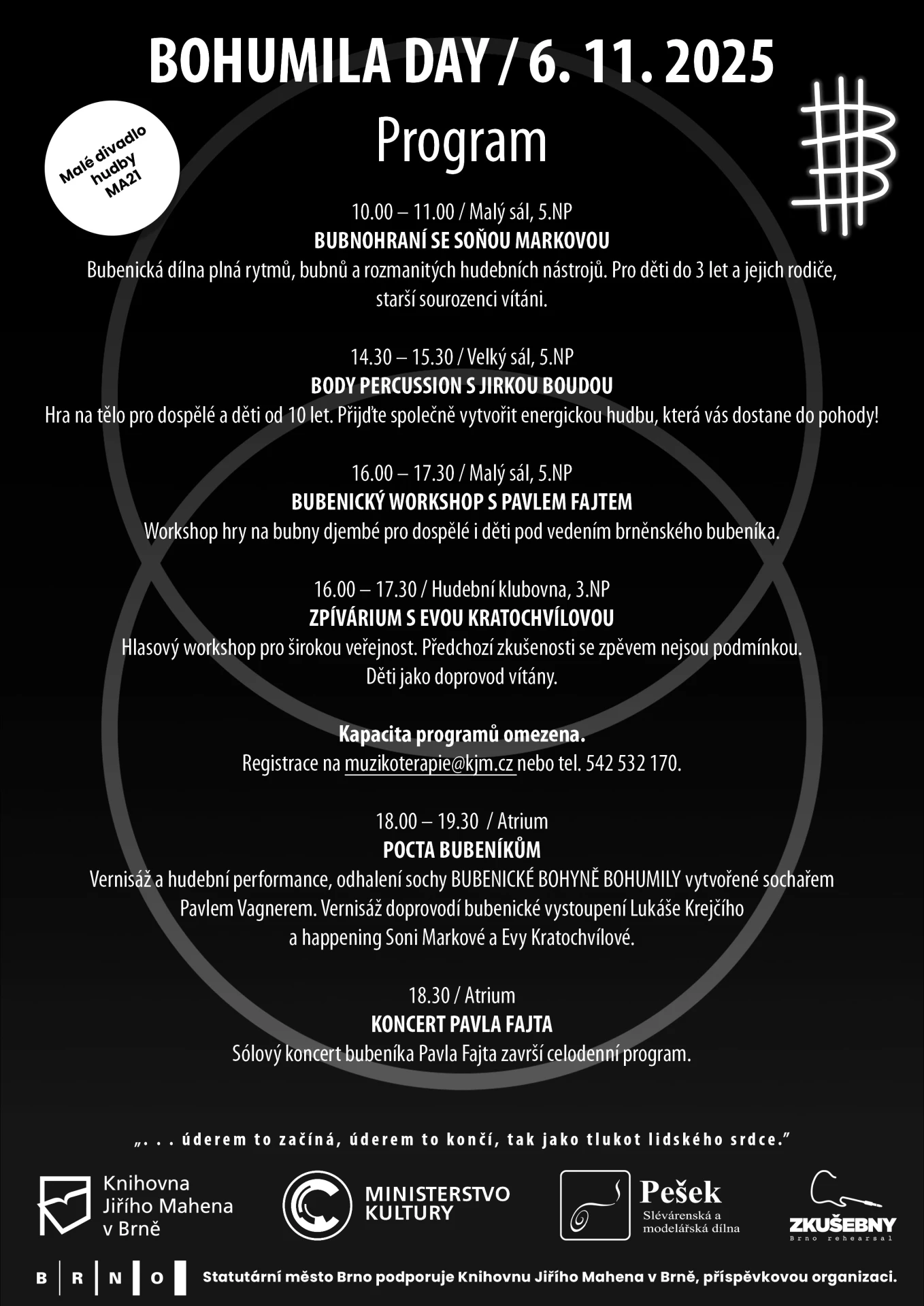 Registrace na muzikoterapie@kjm.cz nebo tel. 542 532 170.