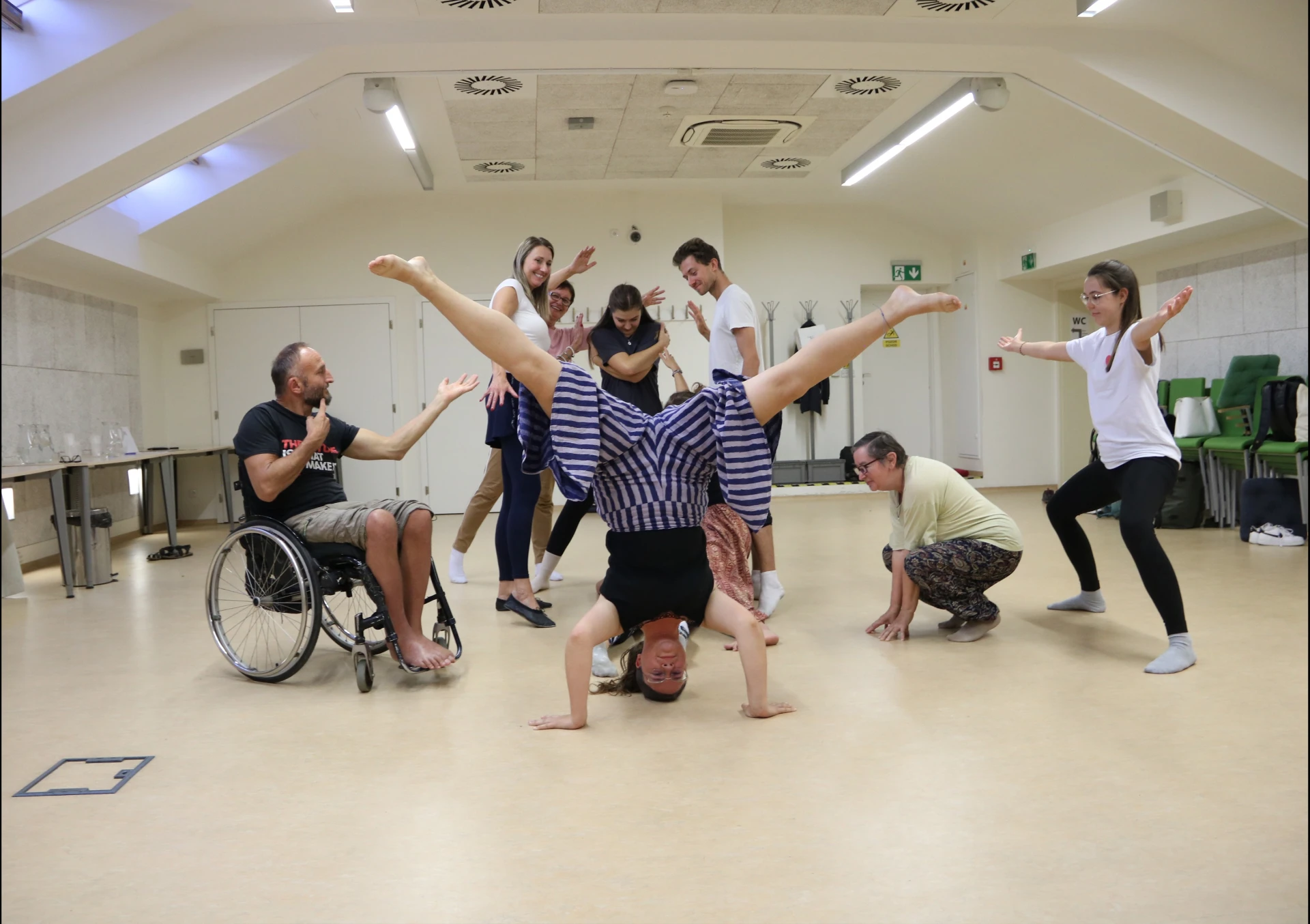 Každý účastník je vnímaný jako plnohodnotný a rovnocenný, ať už se jedná o začátečníka, pohybového profesionála nebo člověka s postižením.