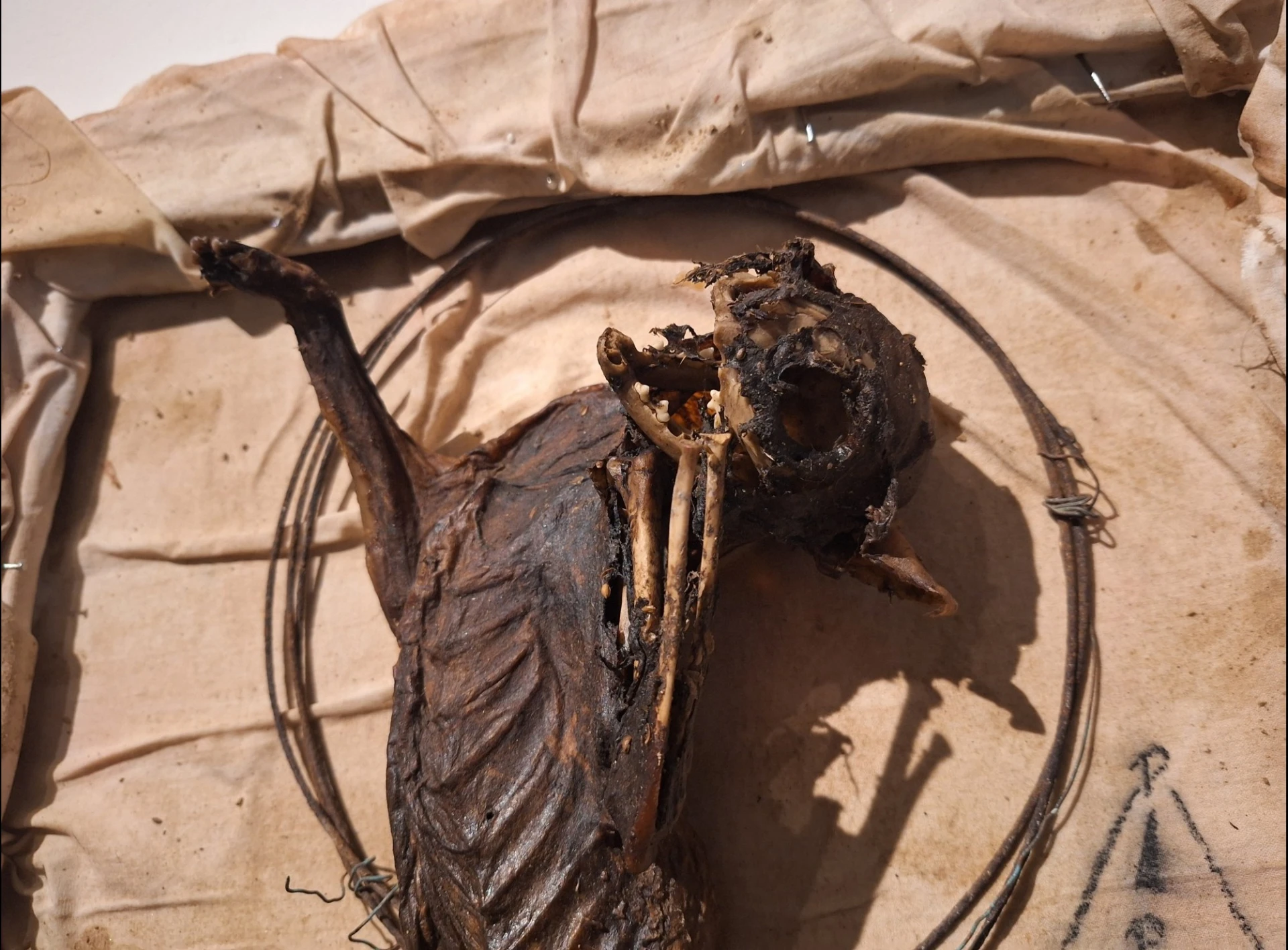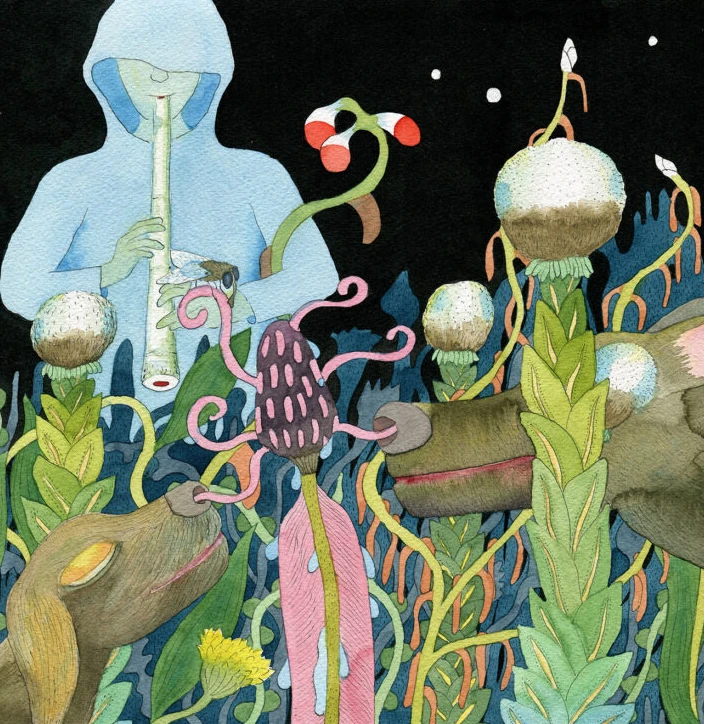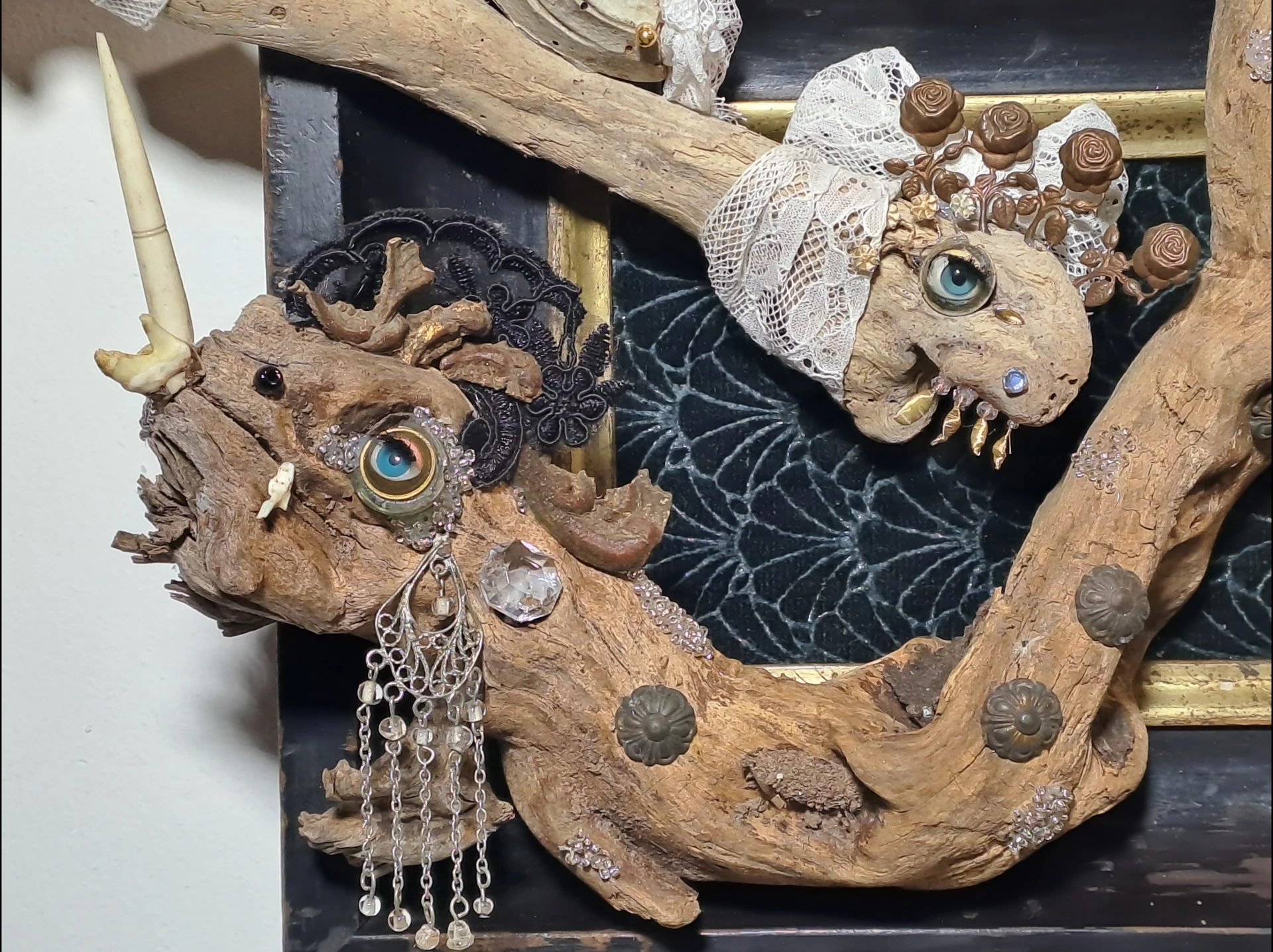 Simona Vinšová je profesí restaurátorka uměleckých děl. Nutnost být neviditelná za restaurovaným kusem tvoří základ jejího přístupu k materiálu. Tam, kde končí pravidla řemesla, začíná prostor pro hru a intuici: z nalezených úlomků dřeva, kostí a kovů skládá bytosti, které oživuje očima mrkacích panen. Výstavu objektových koláží Simony Vinšové doplní teriomorfní akvarely výtvarníka a multižánrového tvůrce Mae Sara.