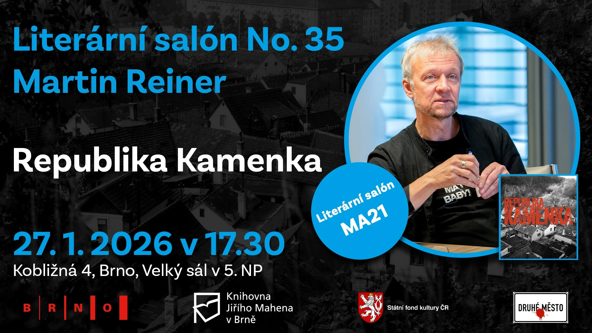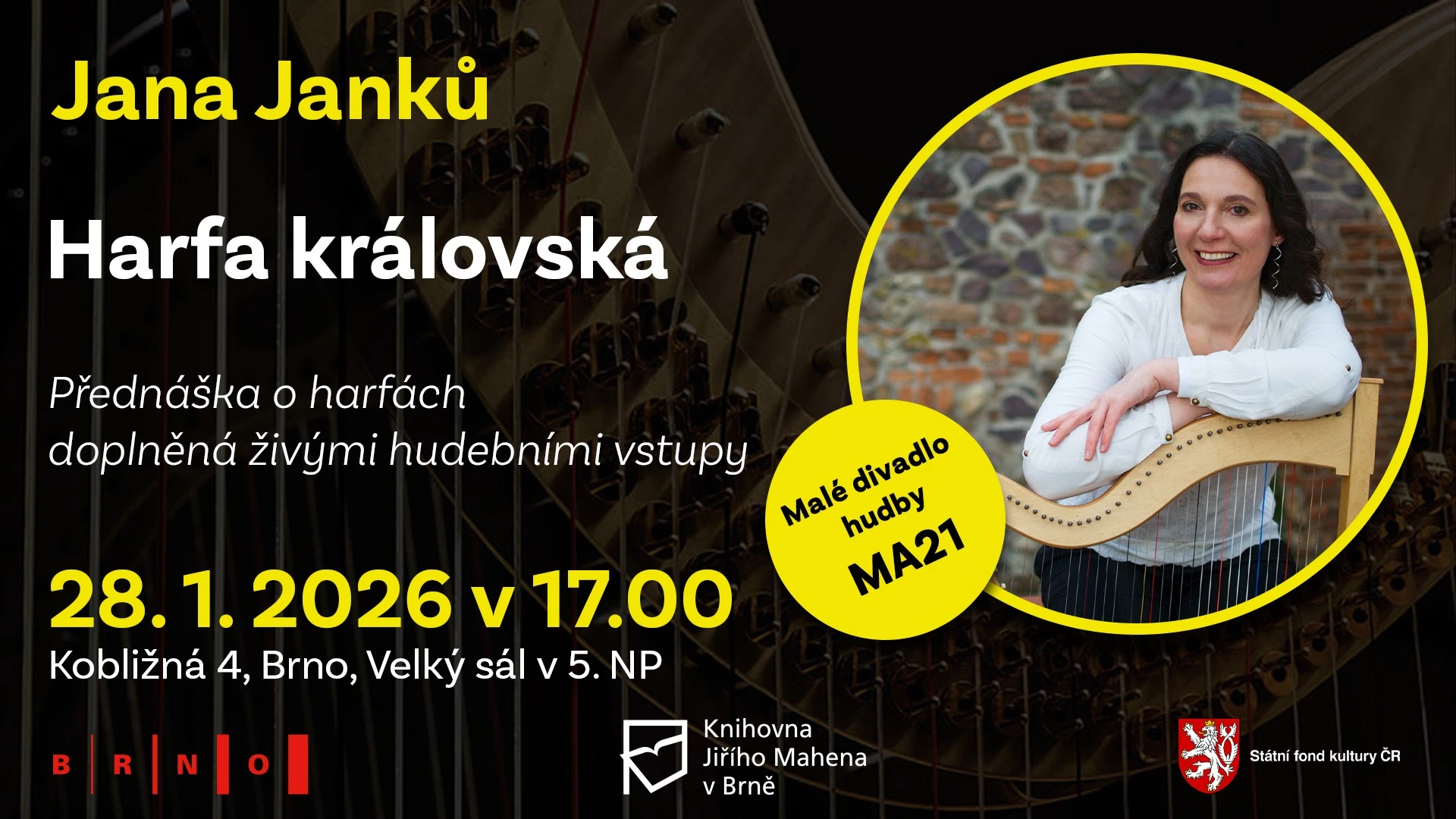 Čekají vás pořady z cyklů Literární salón, Historický klub a Malé divadlo hudby a těšit se můžete na básníka, prozaika a nakladatele Martina Reinera a jedinečnou knihu Republika Kamenka o unikátní brněnské čtvrti Kamenná kolonie, jež slaví sto let své existence, na básníka a lékaře Radovana Jursu a poeticko-hudební uvedení nové básnické sbírky Koncept transparence, na první přednášku z (pod)cyklu Umění v praxi, na divadelní představení či na povídání o historii, společenské roli a kouzlu různých typů harf, doplněné živými hudebními vstupy.