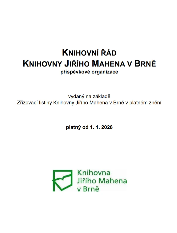 informujeme, že Knihovna Jiřího Mahena v Brně zveřejnila nový Knihovní řád, který vstoupí v platnost 1. ledna 2026.