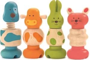 Jednoduchá motorická hra na procvičování zručnosti je ideální pro malé děti od 18 měsíců. Úkolem dětí je spojit pomocí šroubování 4 zvířátka – králíka, psa, kočku a krávu. Hra napomáhá rozvoji jemné motoriky a učí děti soustředění a rozpoznávání barev.