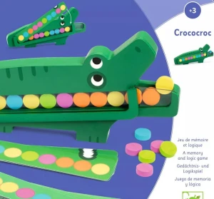 Vzdělávací hra ve tvaru krokodýla pro děti od 3 let. Dřevěná manipulační hra, která je zábavná a vzdělávací zároveň.