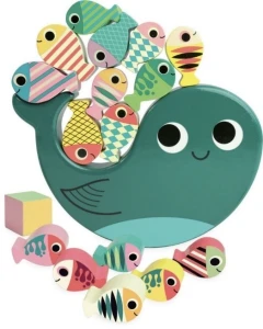 Balanční dřevěná hračka ve tvaru velryby rozvíjí motoriku, koordinaci a soustředěnost našich nejmenších.